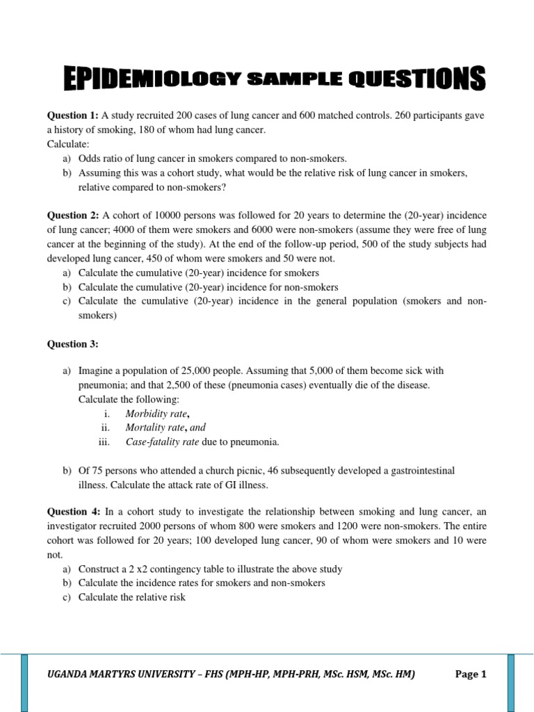 Epidemiology Exam Questions and Answers PDF Transmission (Medicine Epidemiologic Question this course provides an overview of epidemiology, including key terms, sources of data, and study design. descriptive epidemiology addresses many important public health questions and accurate answers to these. Learners will calculate different rates of disease. Now that you have read lesson 1 and have completed the. The historical context definition and scope of epidemiology 3 achievements in.. Epidemiologic Question.